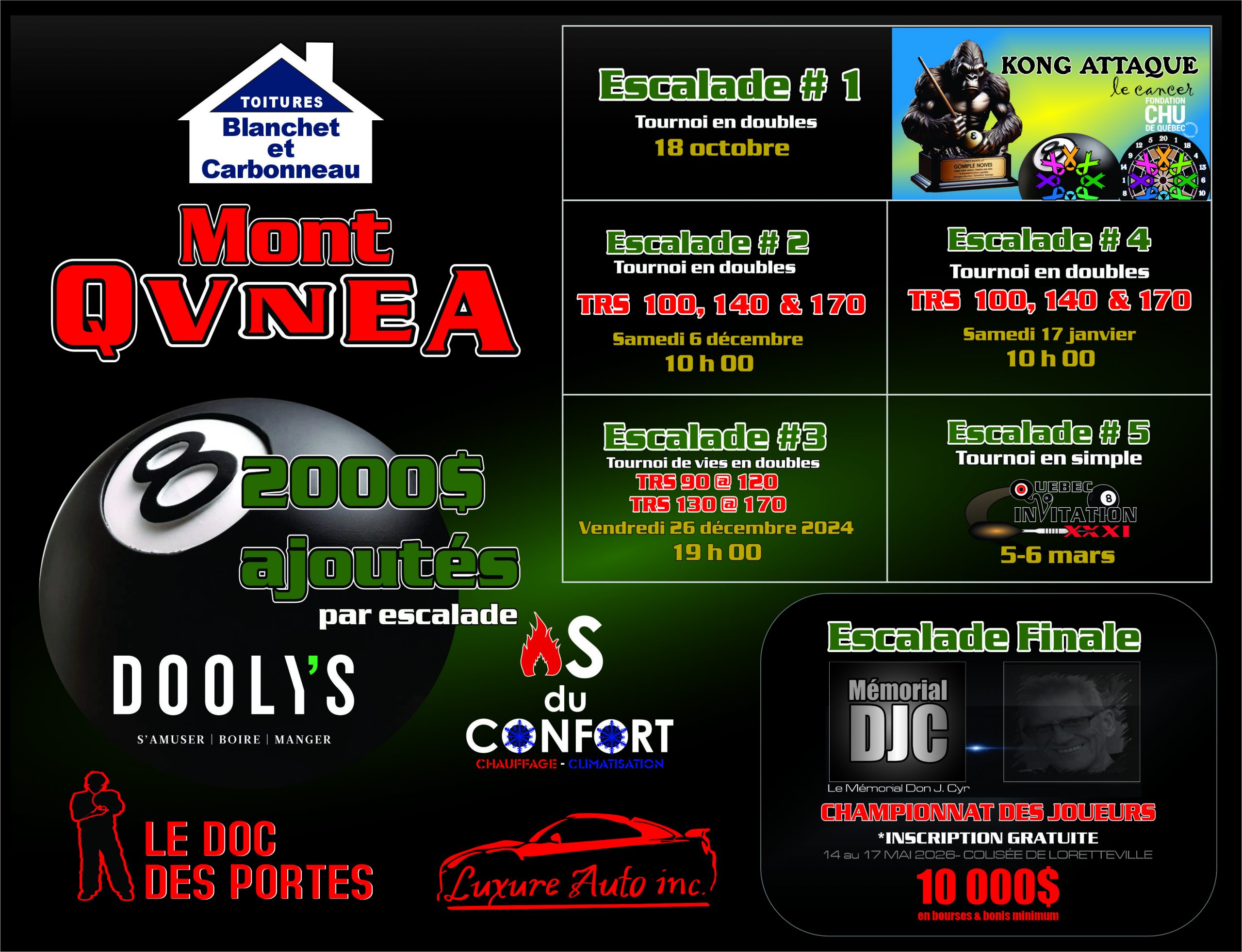 Prêt à viser le sommet ? Inscrivez-vous aux activités QVNEA, participez aux tournois et décrochez votre Mont Jackpot ! L’équipe QVNEA a hâte de vous voir briller lors de la prochaine saison.