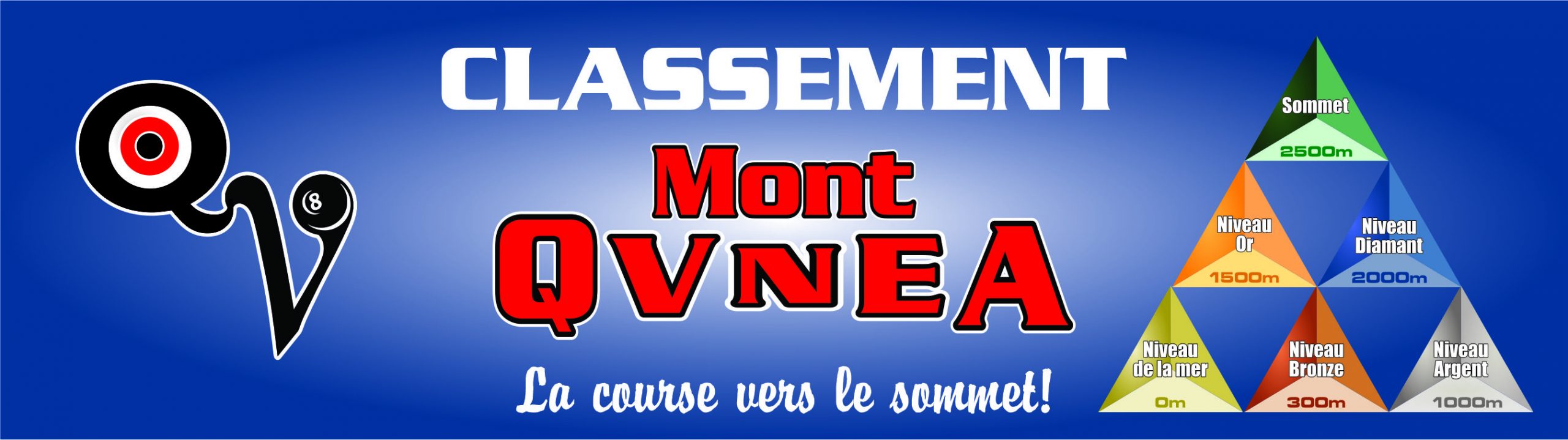 Le Mont QVNEA est un programme de fidélisation unique conçu pour tous les passionnés de billard, qu’ils soient joueurs de ligue, participants de tournois ou remplaçants. À chaque partie, grimpez vers des sommets de récompenses alléchantes, incluant des bourses et des cadeaux exclusifs !