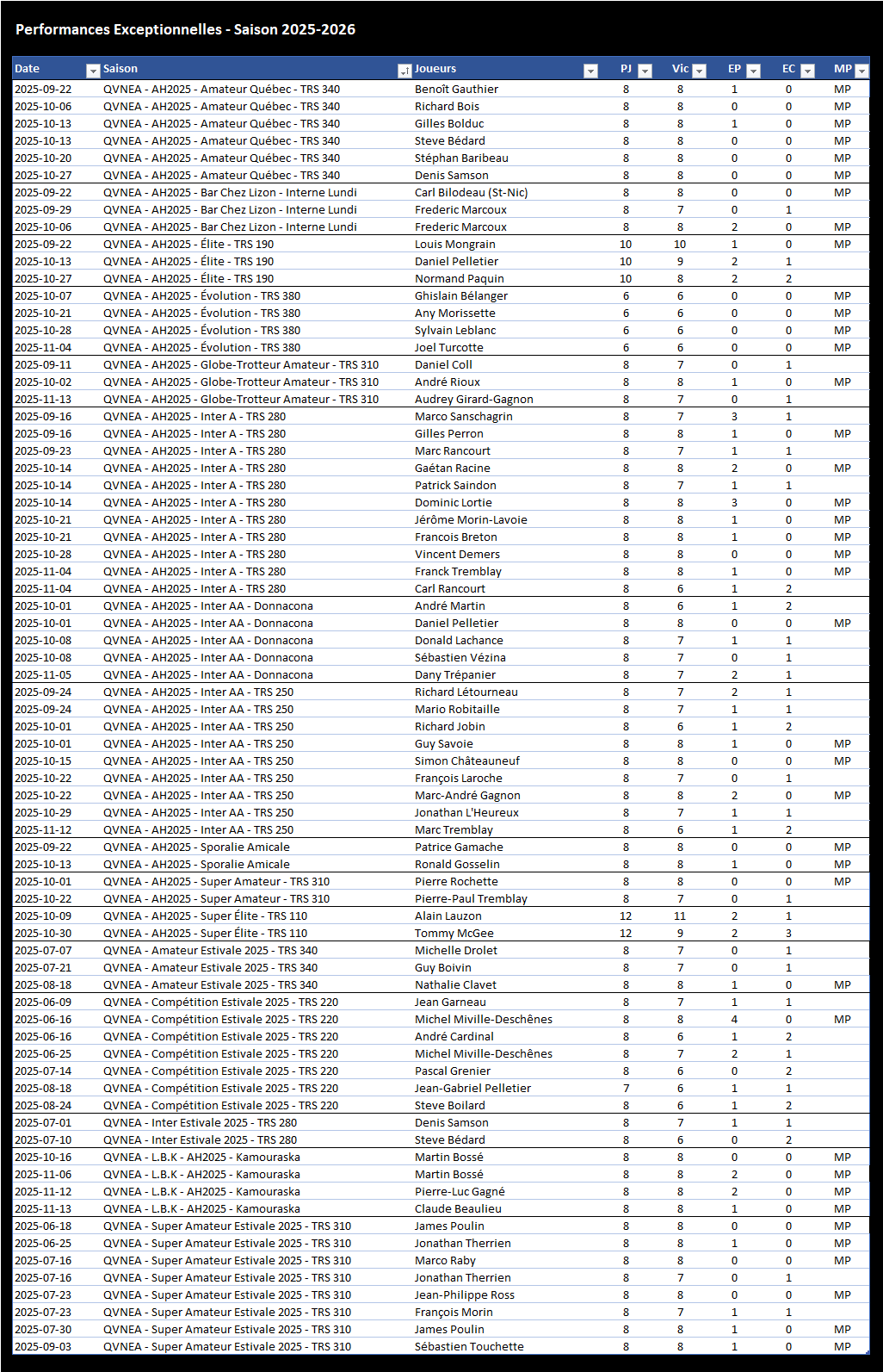Participer au tournoi : Les participants ayant atteint une Performance Exceptionnelle seront invités à un tournoi gratuit organisé en mai prochain lors du Championnat QVNEA au Colisée de Loretteville.