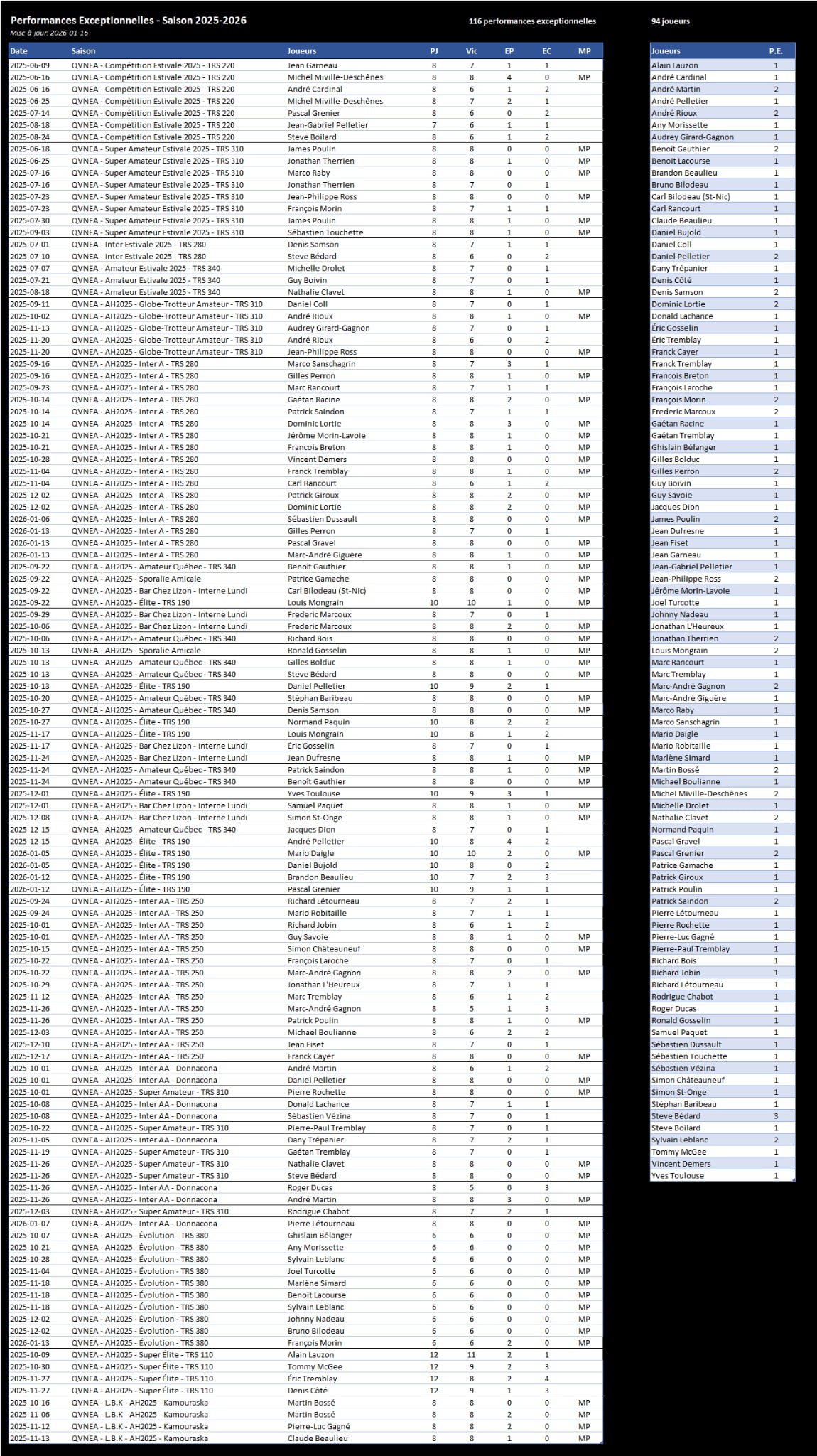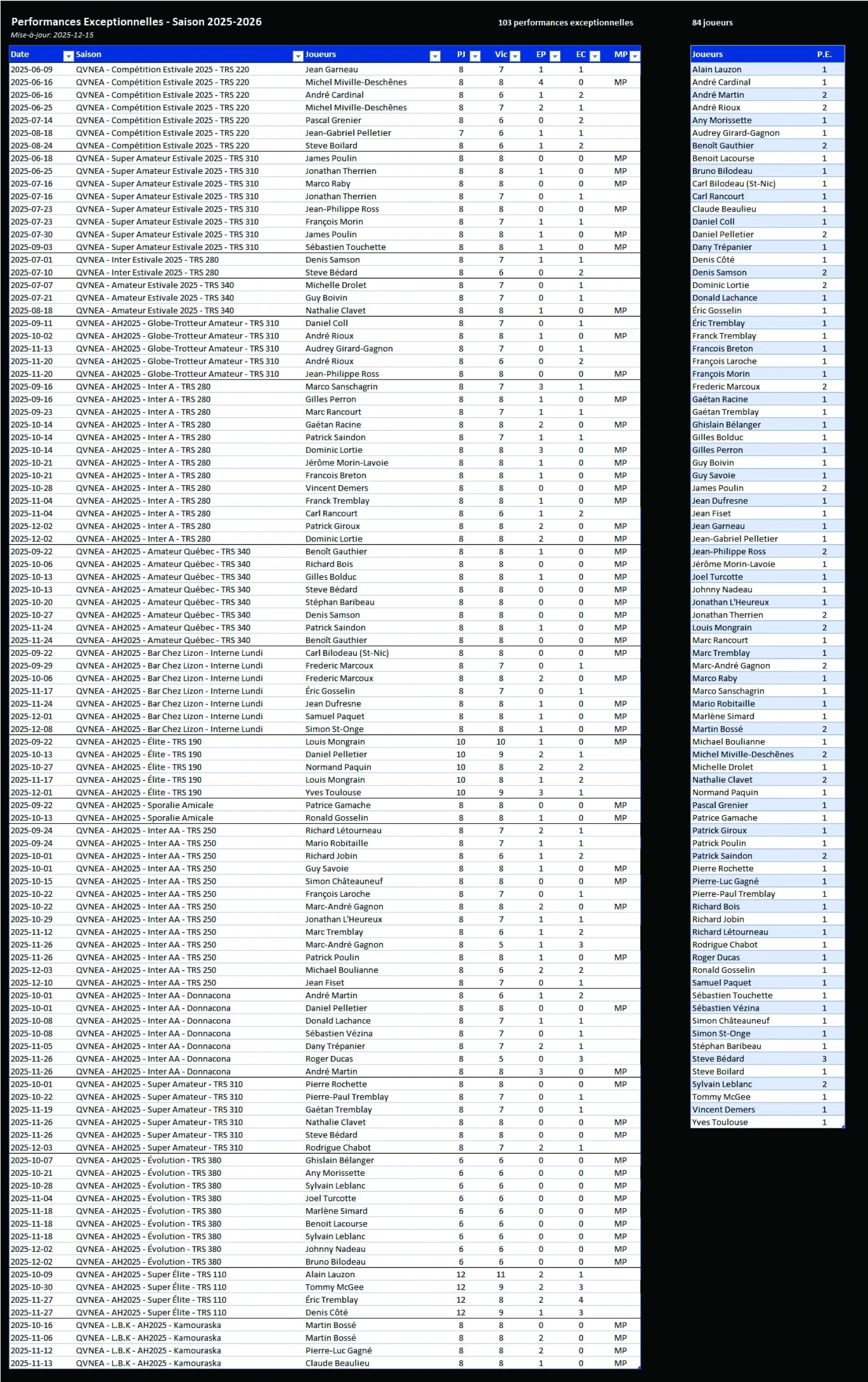 Participer au tournoi : Les participants ayant atteint une Performance Exceptionnelle seront invités à un tournoi gratuit organisé en mai prochain lors du Championnat QVNEA au Colisée de Loretteville.