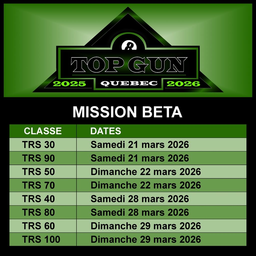 Le Top Gun se déroule en trois grandes étapes. La Mission Alpha est constituée d’une série de tournois à la ronde en groupes de 4 ou 5 joueurs, disputés de novembre à février. Les vainqueurs de chaque groupe accèdent ensuite à la Mission Beta, une formule à plusieurs vies qui fait monter la pression et garde tout le monde en haleine. Enfin, la saison se termine avec la Mission Omega (grande finale), où sera couronné le meilleur joueur de chaque TRS.